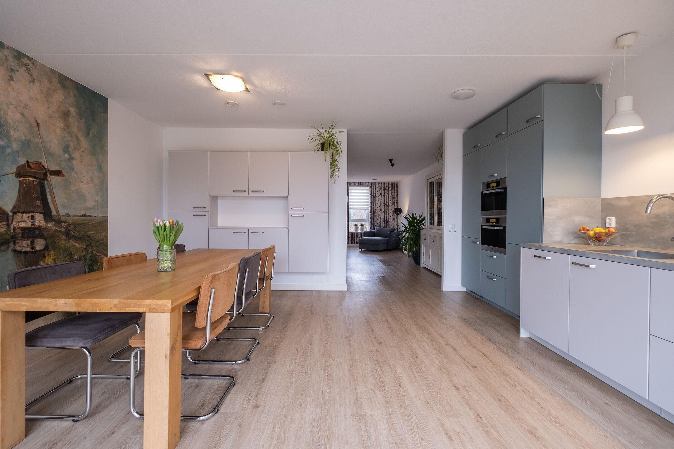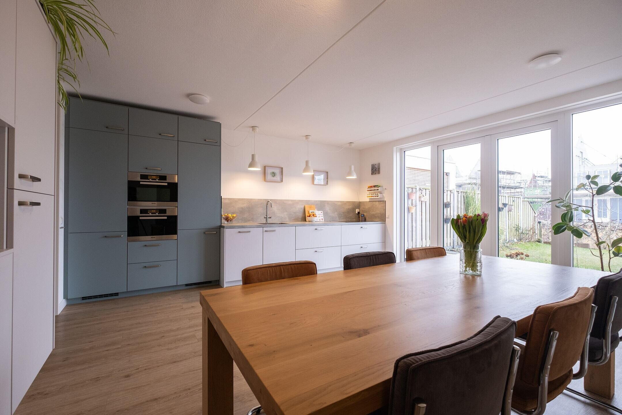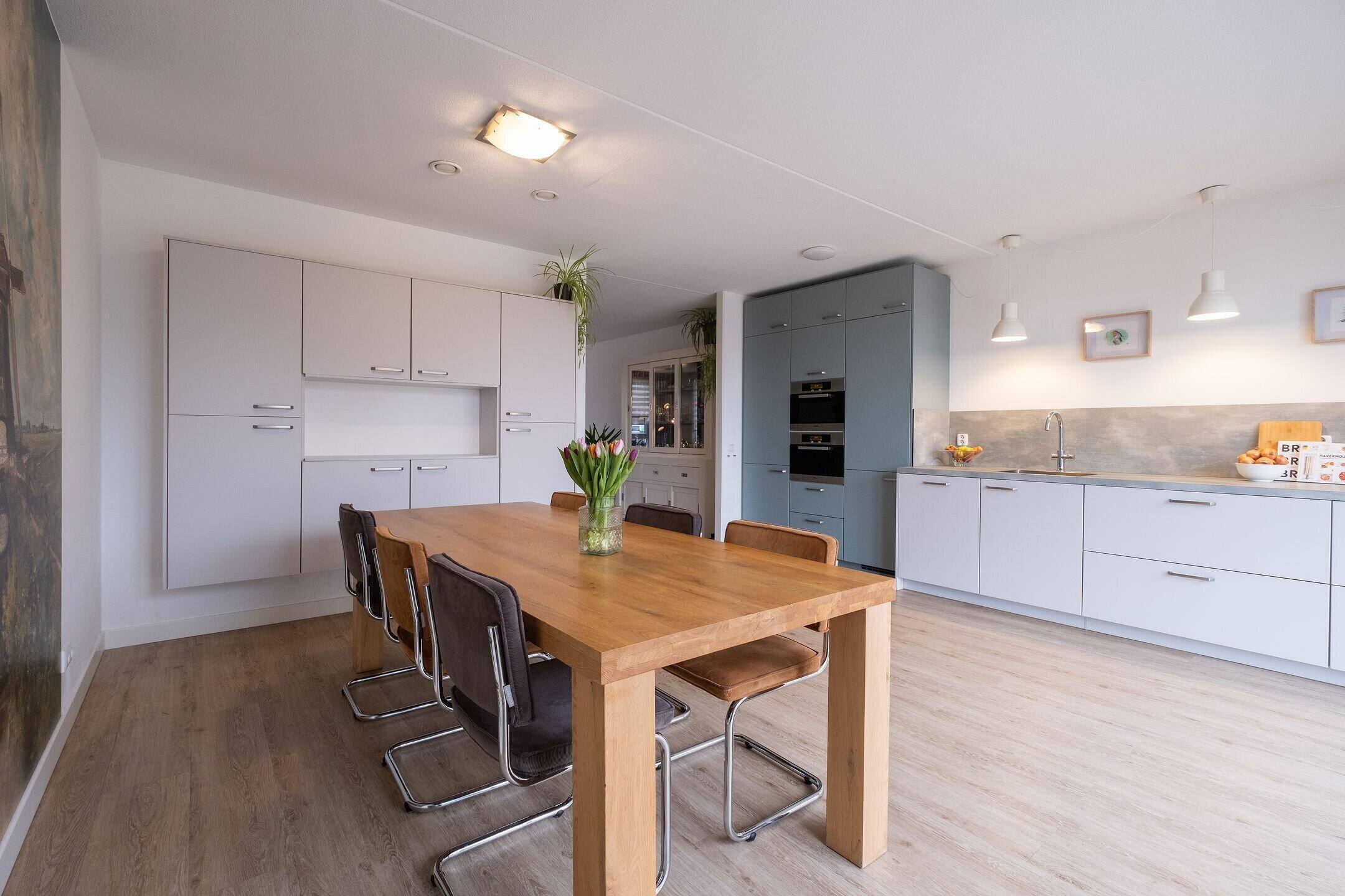De woonkeuken (bouwjaar 2020) is royaal opgezet en voorzien van veel bergruimte en hoogwaardige inbouwapparatuur: een Siemens 5-pits kookplaat, Miele stoomoven, Miele combimagnetron, grote koelkast, vriezer met 7 laden, AEG vaatwasser, Grohe heet waterkraan en een afzuigkap die naar buiten afvoert. Een fijne plek om samen te koken en te leven.