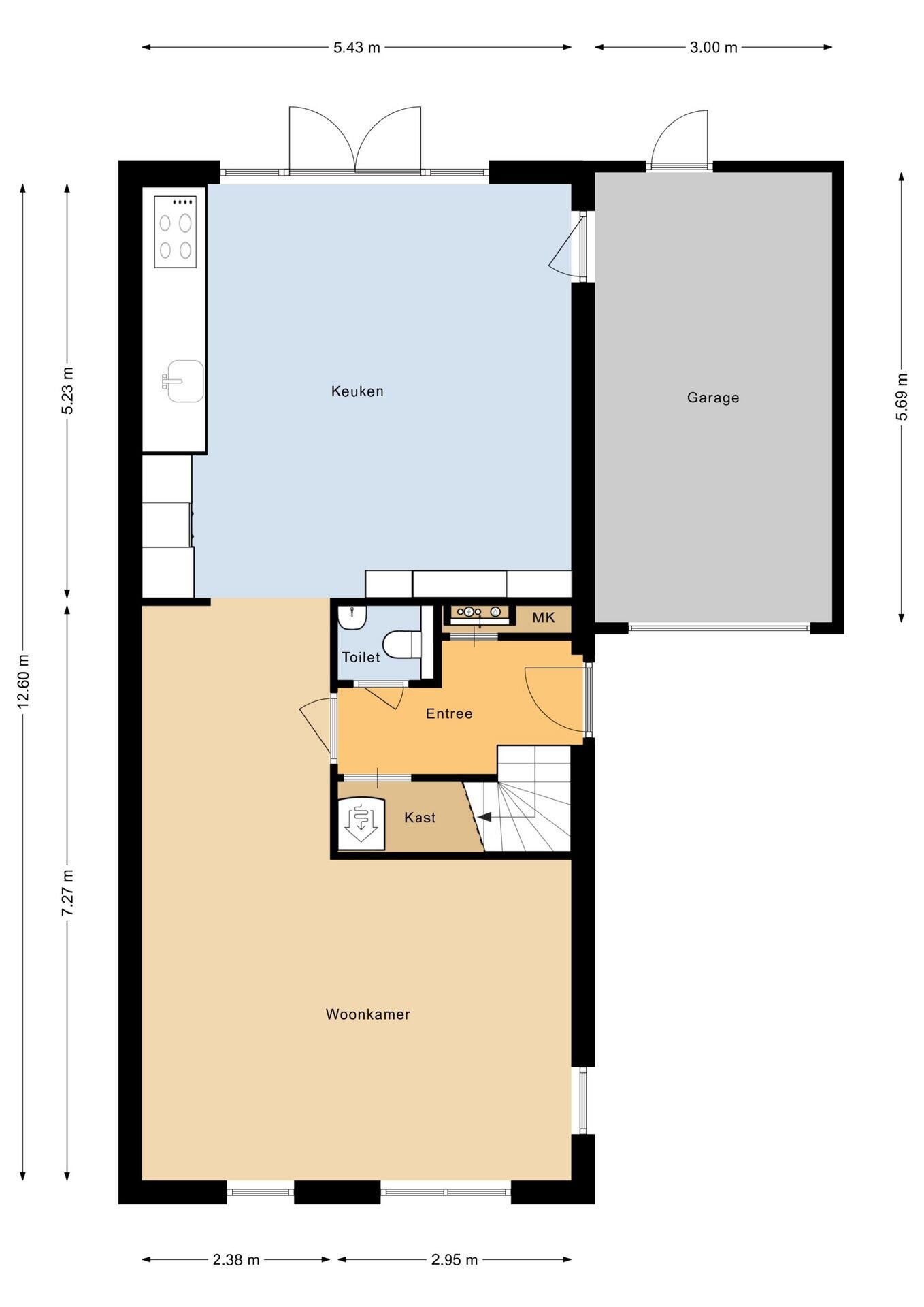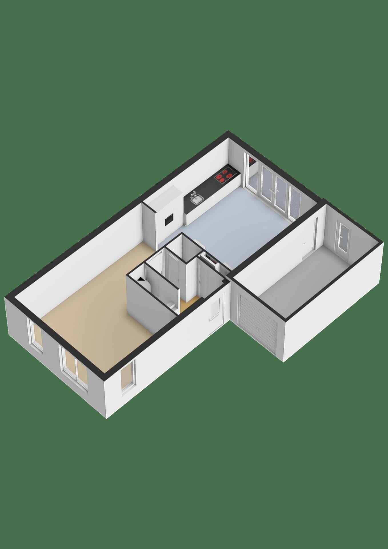 De inpandige garage is binnendoor bereikbaar en voorzien van elektra en een handmatige kanteldeur.