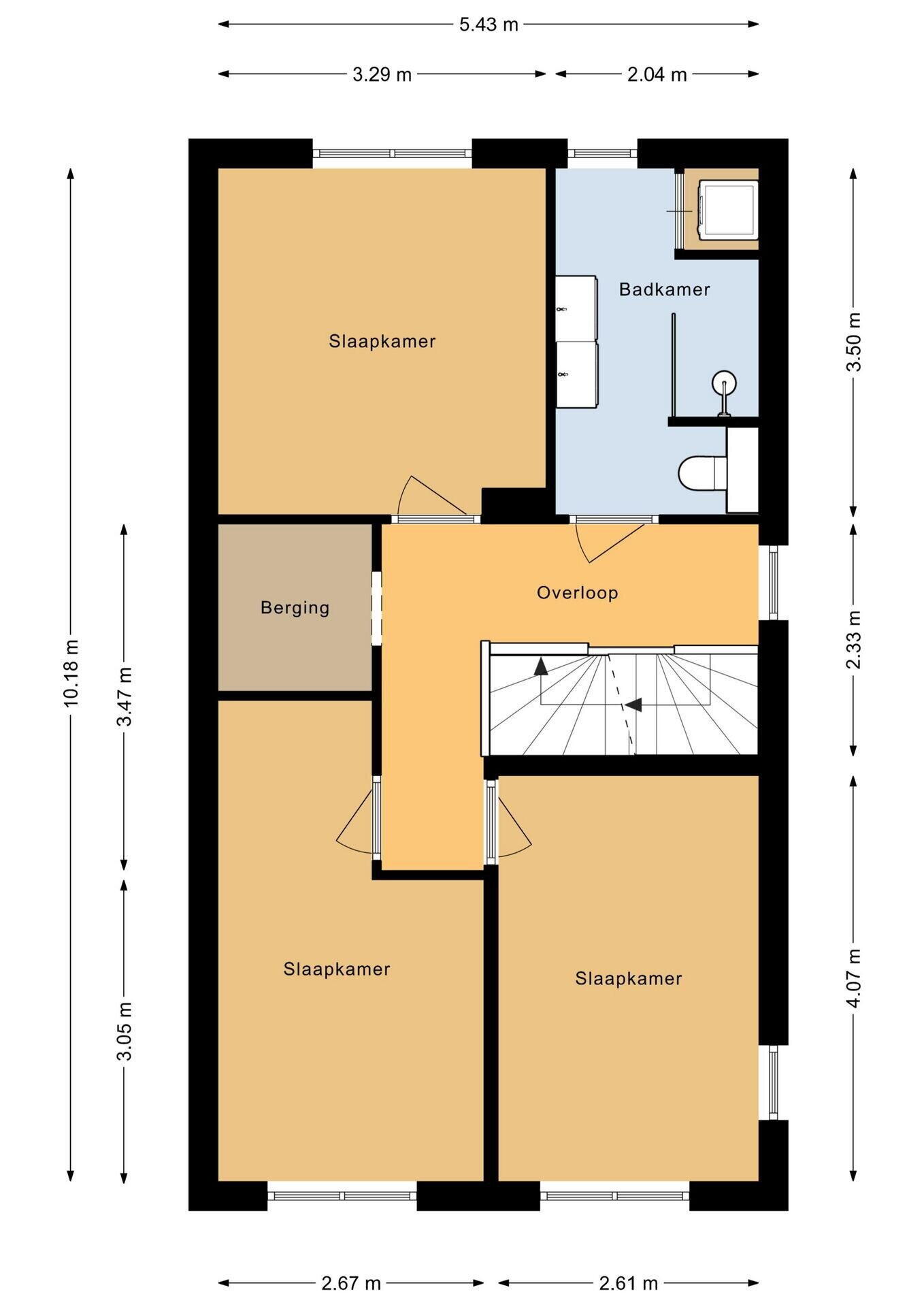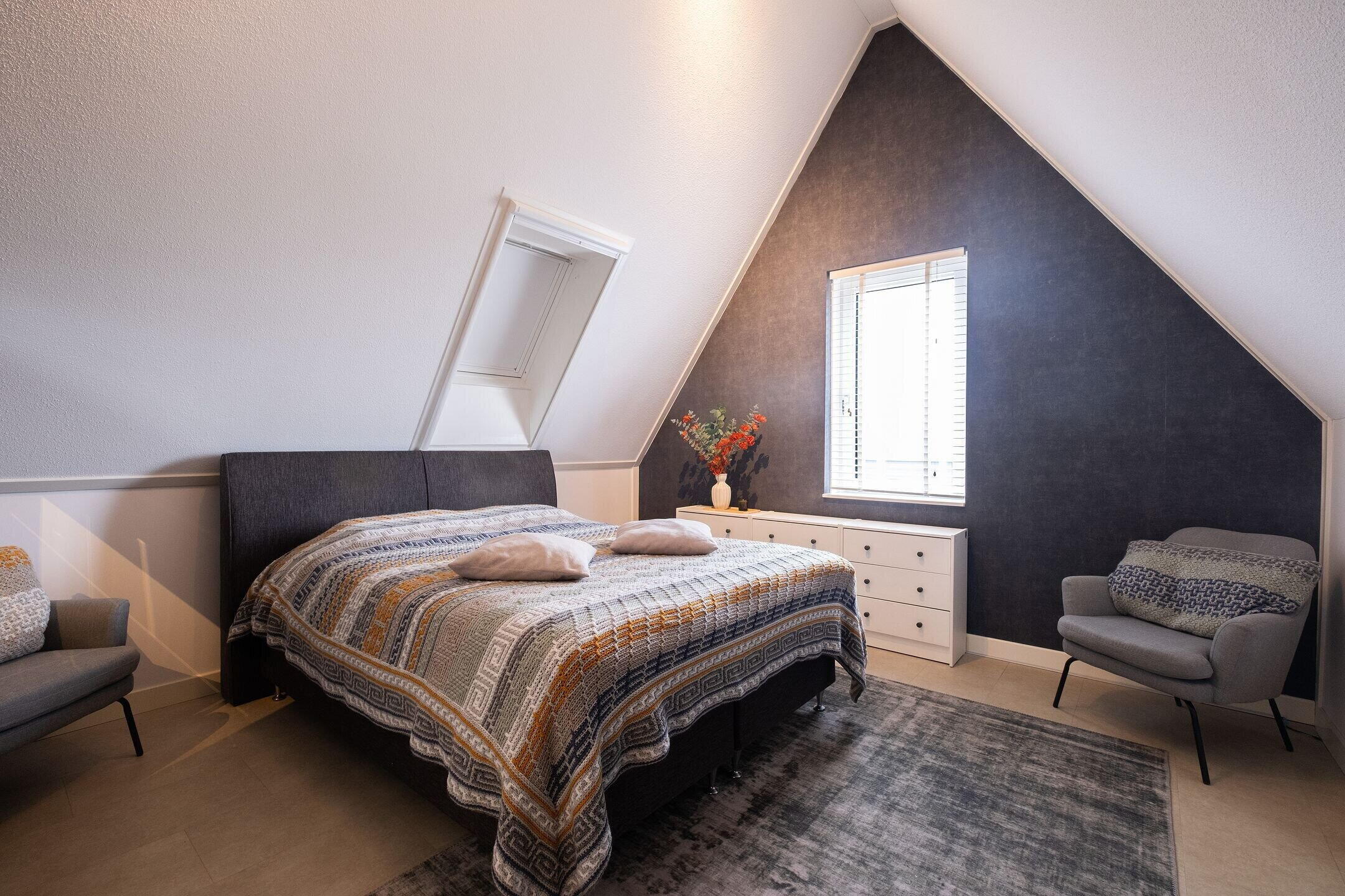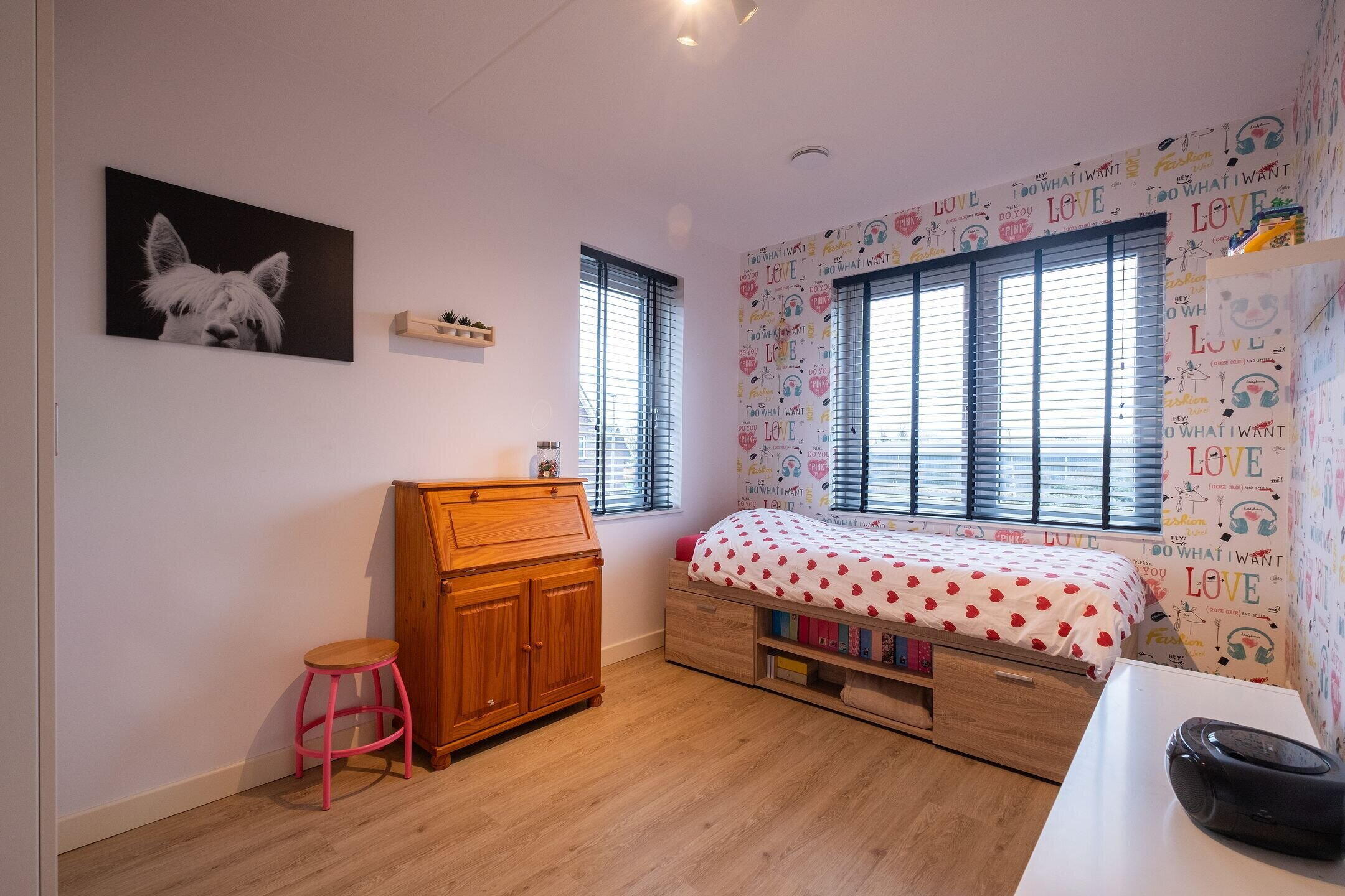Op deze verdieping bevinden zich drie slaapkamers, allen afgewerkt met PVC-vloeren met vloerverwarming. De wanden zijn deels behangen en deels glad afgewerkt. Draai-kiepramen zorgen voor prettig daglicht en ventilatie. Er is bovendien een voorbereiding aanwezig voor een inloopkast.