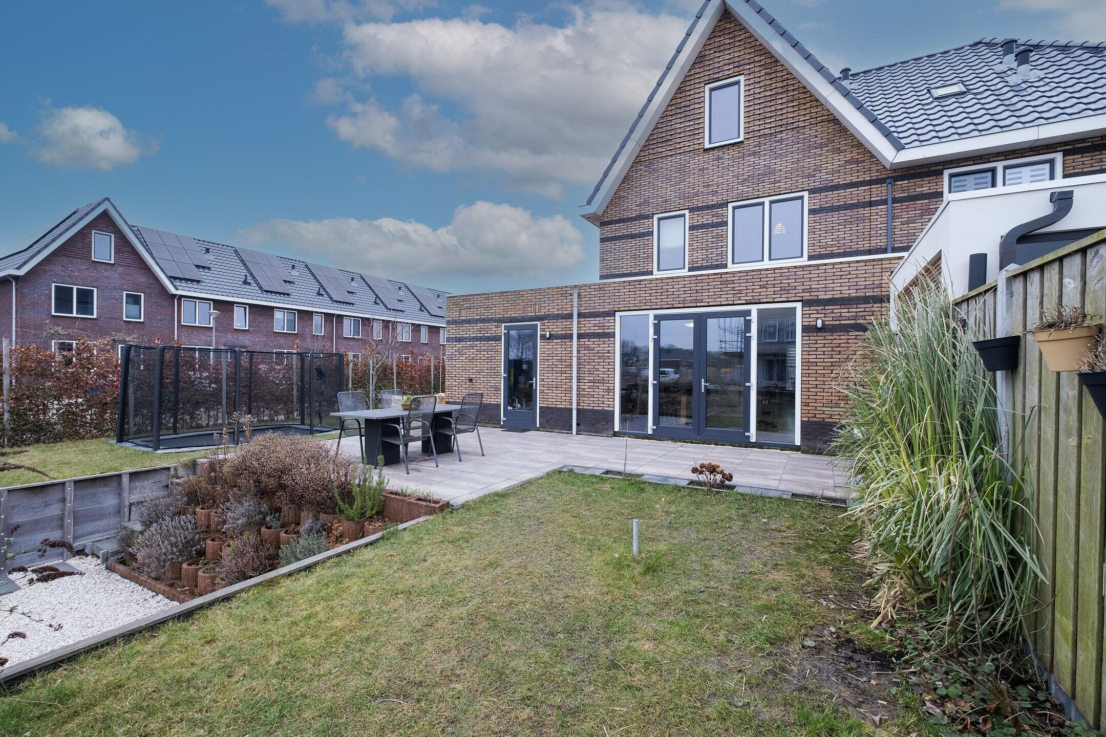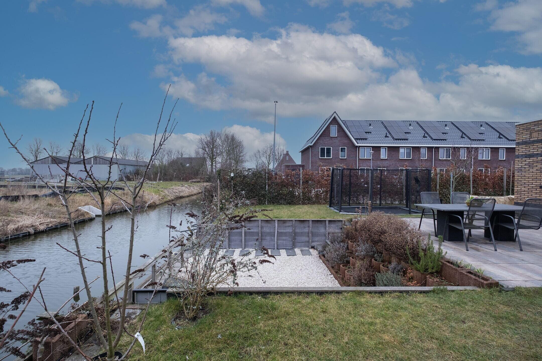 De woning beschikt over een grote tuin rondom de woning. De tuin ligt aan het water en biedt veel ruimte en privacy. Er is een zitkuil aan het water, een trampoline en een buitenkraan aanwezig. Een heerlijke plek om te ontspannen, te spelen of lange zomeravonden door te brengen.